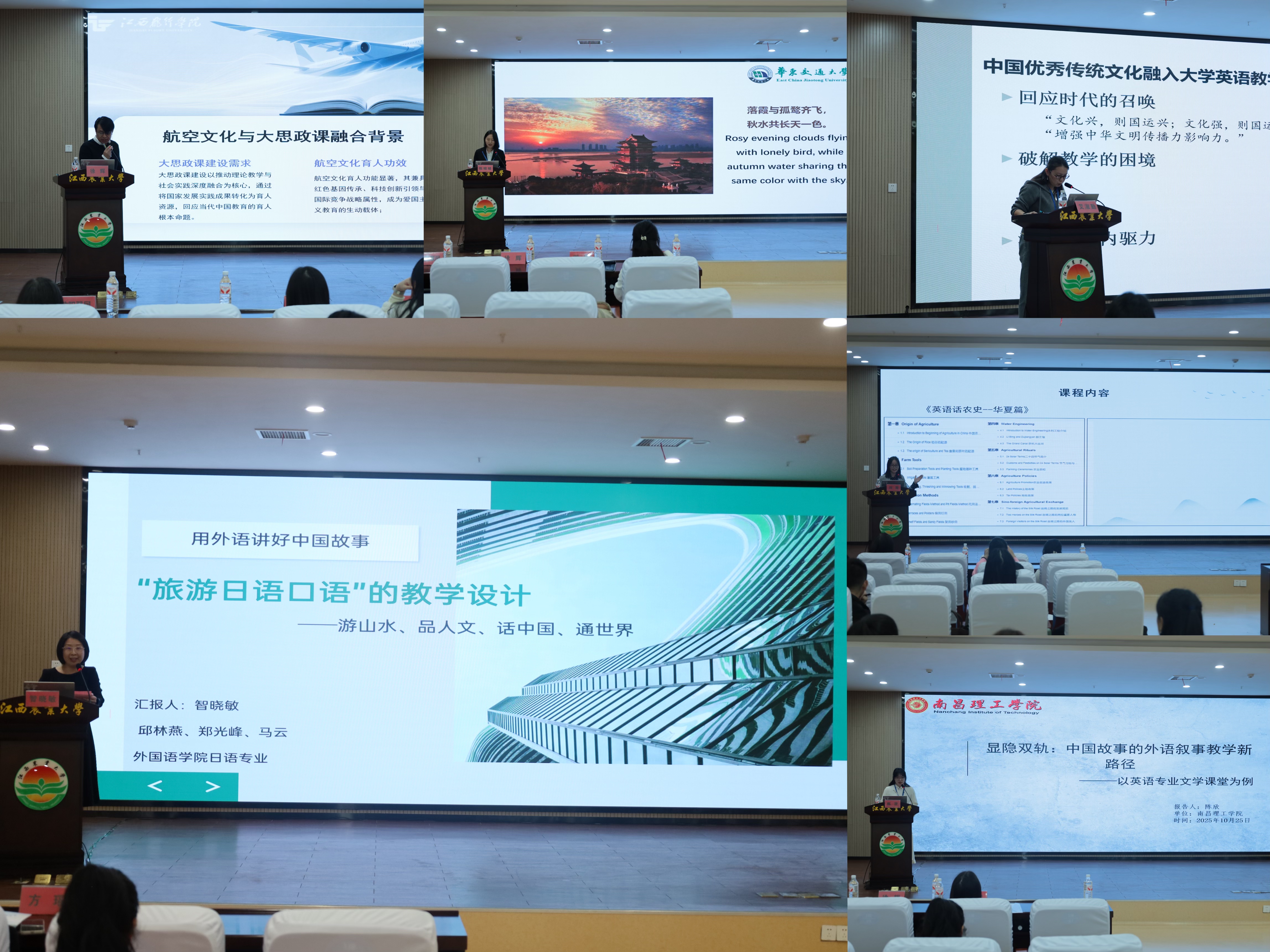 25日下午的“院校交流”环节,来自省内高校的11位外语教师及研究生轮番登台,分享各具特色的课程思政与传播实践:华东交通大学陈蜻蜻提出江西古典诗词“译—传—演”国际传播路径;江西财经大学欧阳翠凤以“床前明月光”英译为例,示范如何让唐诗在英国课堂“发光”;江西理工大学方瑶、严聆玮分别展示“冶金故事”“红色经典”多语种译介方案;江西农业大学刘霞、智晓敏则聚焦“英语话农史”“旅游日语”两门校本课程,分别提出“知农·爱农·话农”三阶递进式育人目标和“游山水、品人文、话中国、通世界”的教学设计,获得同行高度点赞。