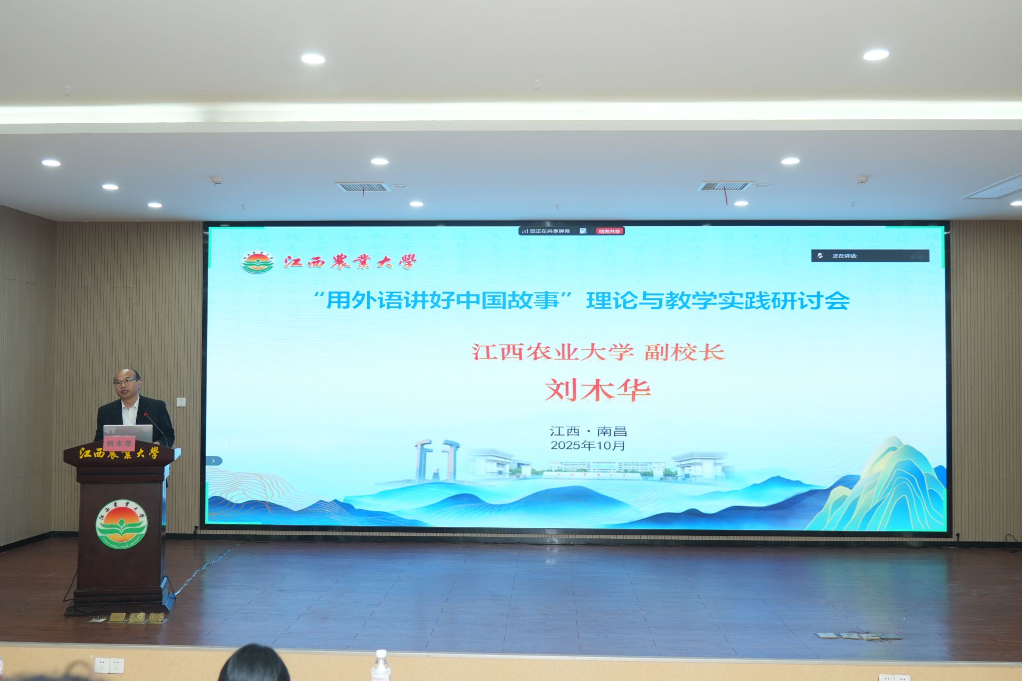 2025年10月24—26日,由江西省外语学会大学外语教学分会、江西农业大学外国语学院、江西省“英语话农史”课程虚拟教研室联合主办的“用外语讲好中国故事”理论与教学实践研讨会在江西农业大学成功举行。来自北京、浙江、辽宁及省内30余所高校的120余位专家学者、院系负责人及一线教师齐聚江农,围绕“讲好中国故事、传播好中国声音”的时代命题,共话外语学科使命与人才培养路径。会议在江西农业大学副校长刘木华与江西省外语学会会长况新华的致辞中拉开帷幕。开幕式由江西农业大学外国语学院院长曾小荣主持。
