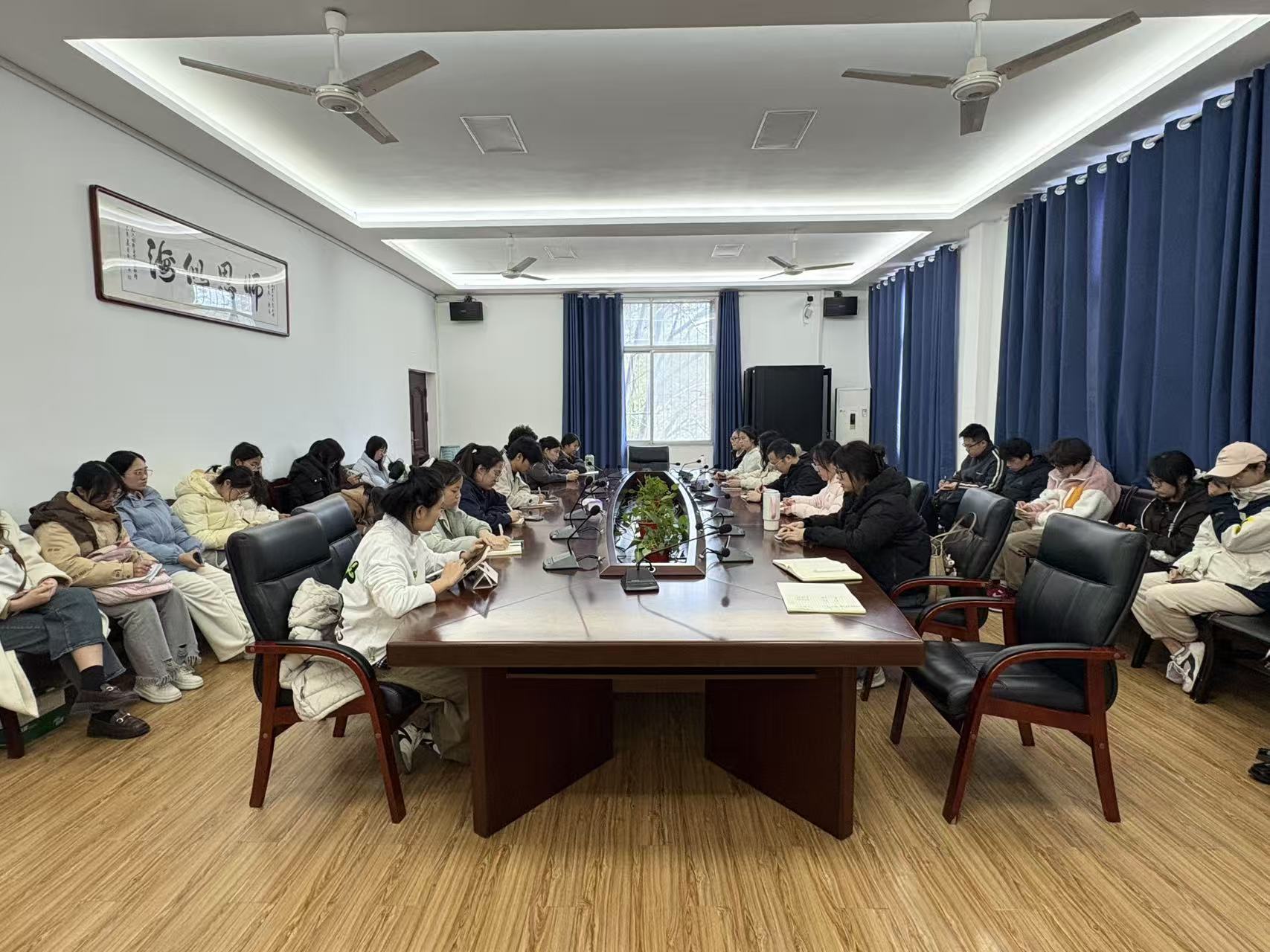 12月16日中午,院学工办在院办201会议室召开12月份班长例会,会议由学工办谢晓文老师主持,学工办詹燕婷老师、学生会委员及各年级班长参加会议。